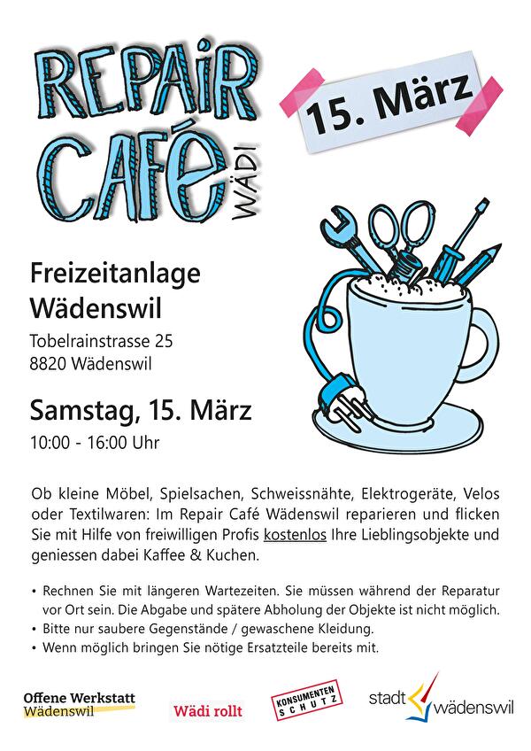 Ob kleine Möbel, Spielsachen, Schweissnähte, Elektrogeräte, Velos oder Textilwaren: Im Repair Café Wädenswil reparieren und flicken Sie mit Hilfe von freiwilligen Profis kostenlos Ihre Lieblingsobjekte und geniessen dabei Kaffee & Kuchen.